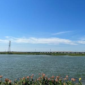 一列高铁在十八联圩湿地中穿行。 新华社记者刘美子 摄