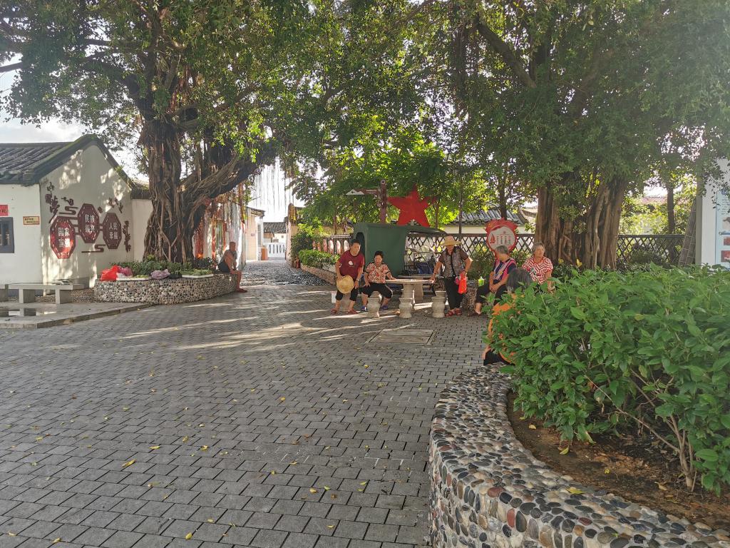 汕尾新山村村民在村广场聊天。新华社记者孙飞 摄