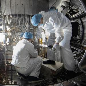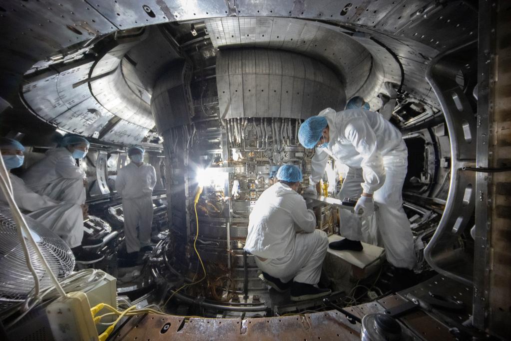 科研人员对全超导托卡马克核聚变实验装置内部进行升级改造。新华社发(胡海临 摄)