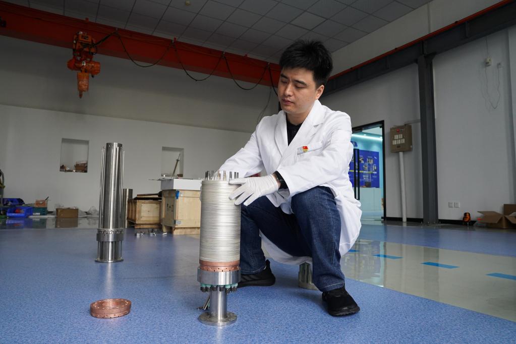 房震正在组装水冷磁体线圈。新华社记者 杜宇 摄