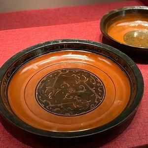 正在江西省博物馆展出的龙纹漆盘。新华社记者袁慧晶摄