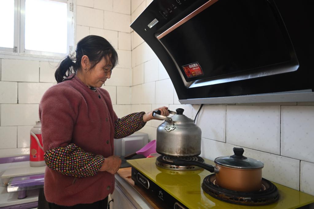 11月16日,在西宁市大通回族土族自治县青山乡沙岱村,村民正在烧水。(新华社记者 张龙 摄)
