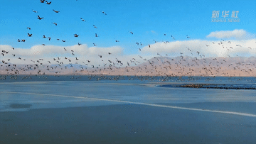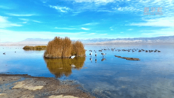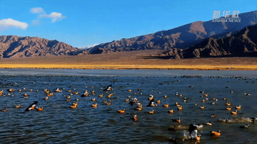 与斑头雁、赤麻鸭一同嬉戏觅食