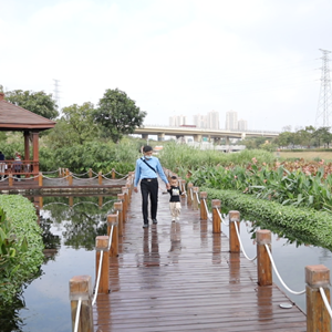 住在公园旁的市民韦如科推开窗户,对面的百亩美人蕉开得正艳,“开窗见绿,开窗见水,开窗见花,我的花园居住梦实现了。”