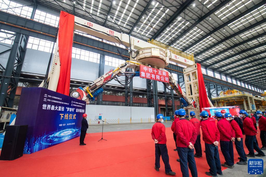 新华社北京11月29日电(记者严赋憬)记者从中国铁建股份有限公司获悉,由我国自主研制的超大直径竖井掘进机“梦想号”29日在长沙下线。“梦想号”整机高约10米,开挖直径达23.02米,标志着我国地下空间领域工程装备科技攻关及应用又上新台阶。