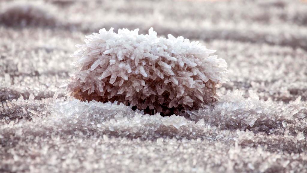 站在运城盐湖岸边放眼望去,大面积晶莹剔透的“硝花”在阳光照射下,犹如一颗颗耀眼的钻石。走上前去,会发现这些美丽的“硝花”形态各异,有的像松针、有的像珊瑚,有的像水中盛开的雪莲,让人不由惊叹大自然的鬼斧神工。