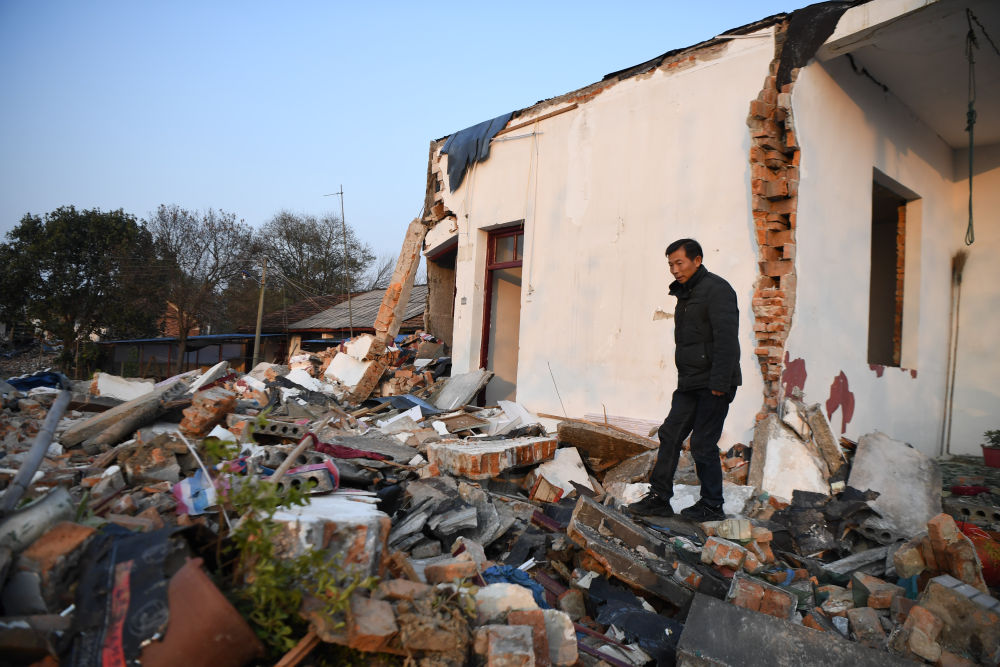 ↑ 2020年12月20日,石仲芳行走在自家被推倒的房屋废墟上。