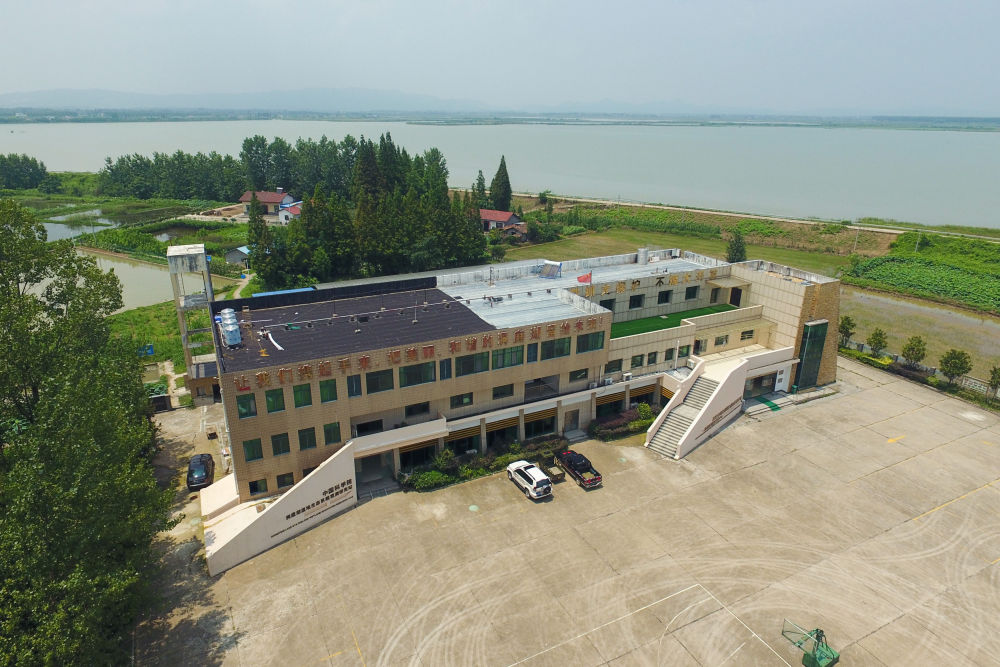 ↑ 2018年7月10日拍摄的位于洞庭湖畔的中科院洞庭湖湿地生态系统观测研究站。