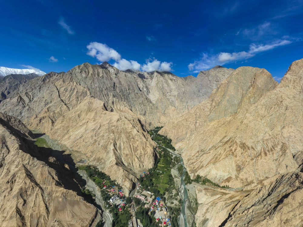 ↑ 塔县大同乡政府驻地周边村庄(2020年6月14日摄)。