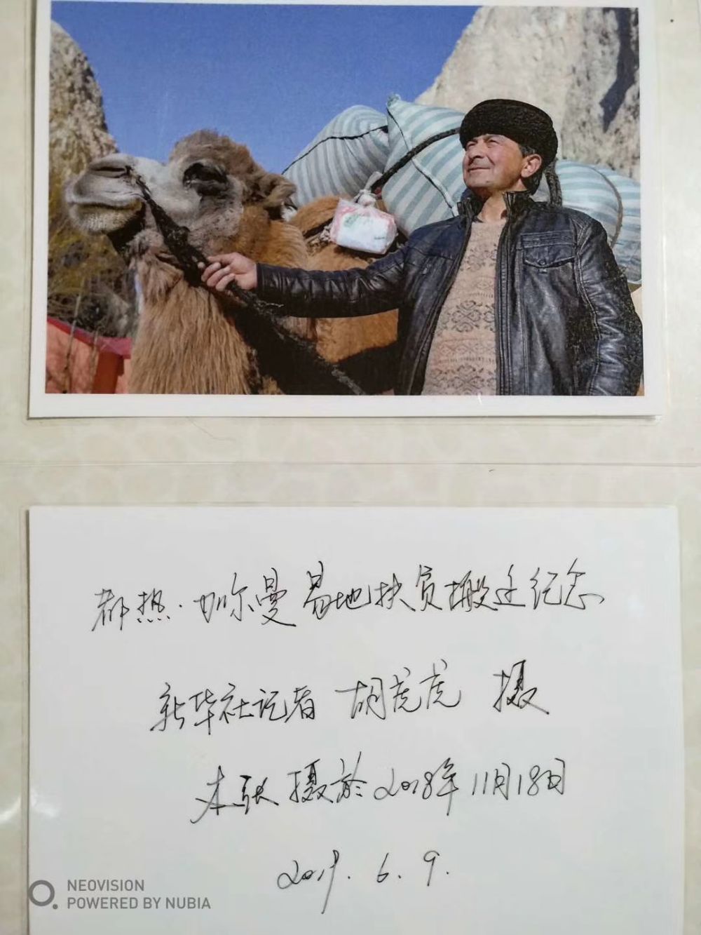 ↑ 记者回访时,将搬迁时所拍摄的照片打印留给都热·加尔曼作纪念。