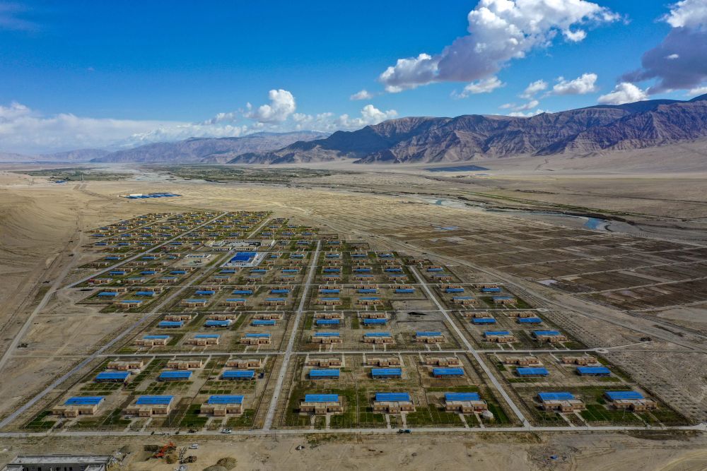 ↑ 都热·加尔曼迁出大山后的居住地,塔县县城旁的安置点,现已命名为“爱民村”、“富民村”,这是两村全貌(2020年6月15日摄)