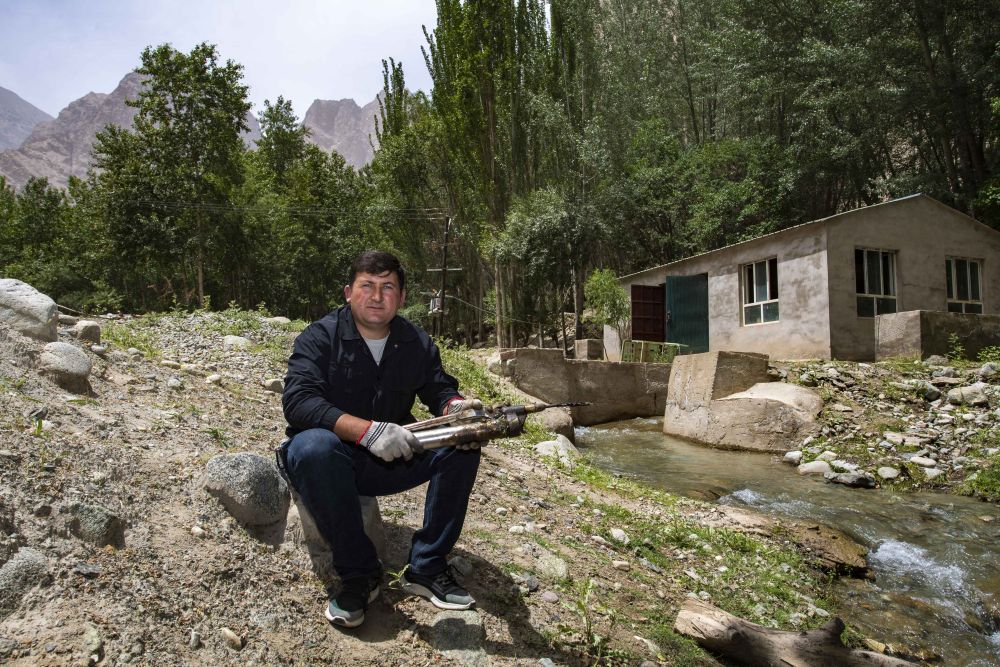 ↑ 这是在塔县大同乡“小水电”站房前拍摄的阿米尔江·艾力木(2020年6月13日摄)。