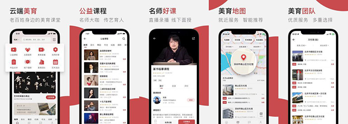 据悉,“云端美育”APP旨在探索全民艺术普及服务新路径,打造城乡居民的终身美育学校,助力构建青少年美育服务体系。“云端美育”APP 整合汇聚公共文化机构、社会艺术教育机构、艺术文化类公益性组织的高品质师资,围绕在线直播、公益课程、志愿服务、名师好课、线上点评、线下面授、美育团队、艺术活动等核心功能,通过地理位置信息服务(LBS)模式,绘制美育地图,让人们可以根据自己当前的位置信息,就近搜索和筛选多品类、更多元、更便捷的线上线下艺术普及服务。5月31日“云端美育”APP开启试运行时,就已经首批发布480位艺术家等师资、827门艺术教学课程。