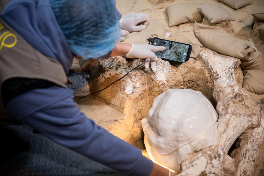 “头骨的发掘和相关样品的提取及数字化建模是本次工作的重中之重。”主持本次考古发掘和研究的项目负责人陆成秋介绍,历时半年,在4平方米的范围内,考古队进行了20多次高精度的三维建模,拍摄了20多万张照片,对发掘的全过程做了高清录像,提取了1400多份沉积样品,力争实现化石与文化遗存发掘的精细化和高标准。