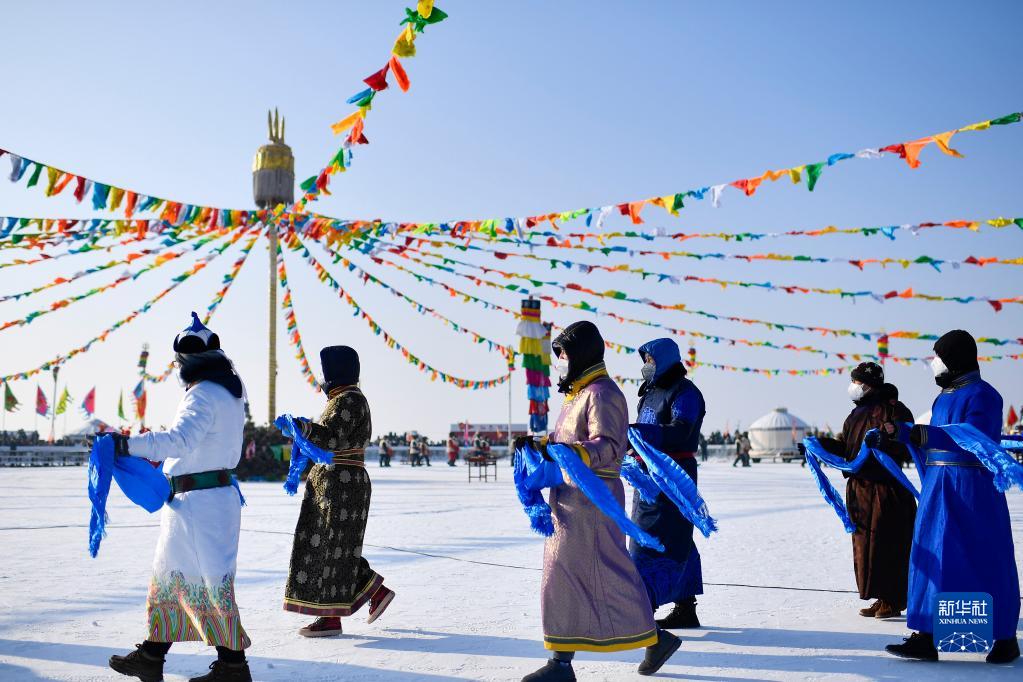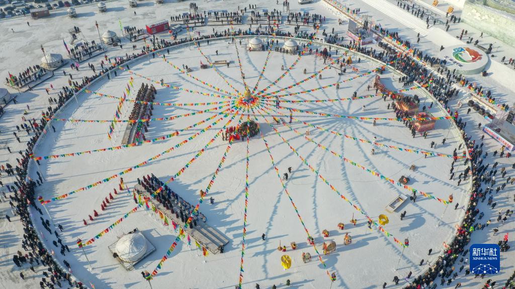 12月28日拍摄的查干湖第二十一届冬捕节祭湖醒网仪式现场。新华社记者 许畅 摄