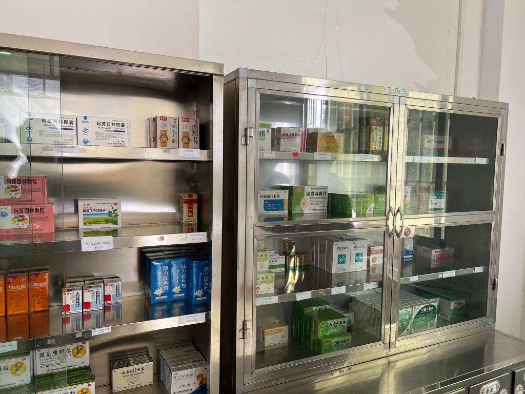 板升乡弄丛村卫生所药房里储备的药品。新华社记者黄浩铭 摄