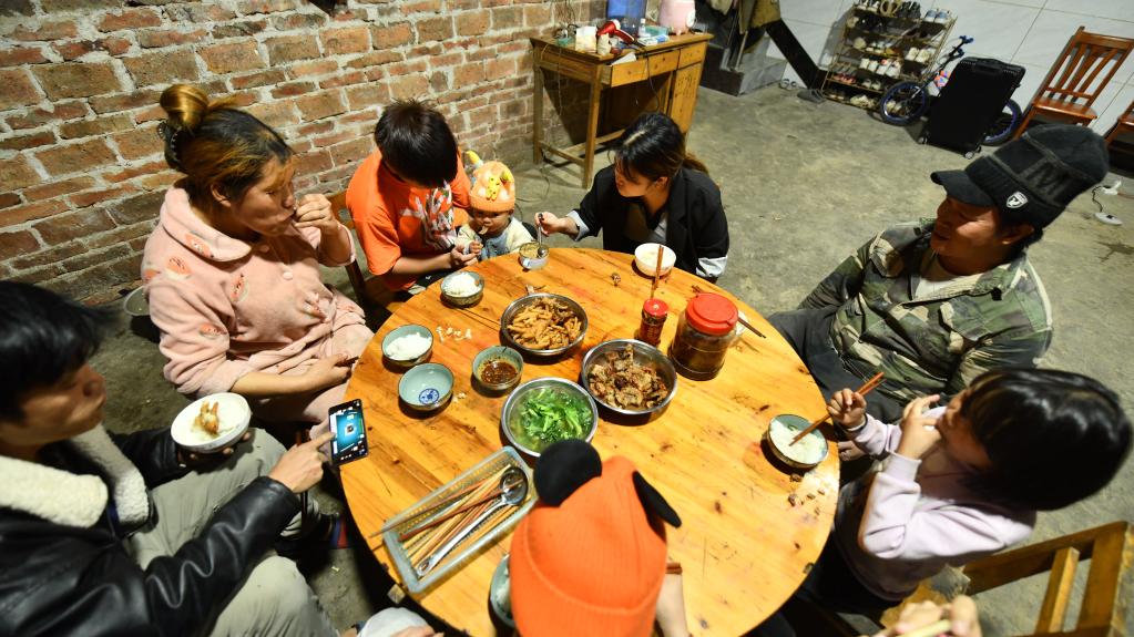 跨越约900公里的路程,一家人迎来了团聚时刻。餐桌前,大家都迫不及待和家人分享过去一年生活的点滴。蒙桂苏向儿女说起新春的打算:“家里建的房子一直没装修,最近一段时间我备好了地板砖等材料,一家人一起把房屋装修一番。”