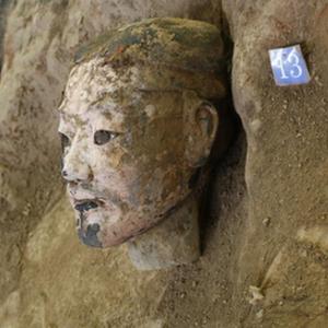 一号坑的第三次考古发掘开始于2009年,发掘面积约430平方米,目前共清理陶俑220余件、陶马16匹、战车4乘,以及车马器、兵器、生产工具等。