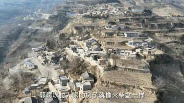 从空中俯瞰,郭塄坎村人家的房子就像火柴盒一样松散地搭在滑坡体上,脚下便是千沟万壑。