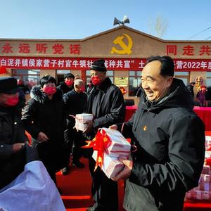 1月17日拍摄的内蒙古自治区鄂尔多斯市达拉特旗白泥井镇侯家营子村官牛犋社分红现场。 新华社记者 贾立君 摄