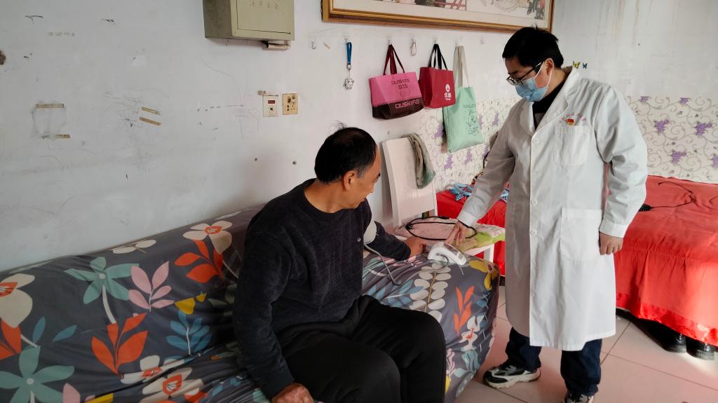 “今天感觉怎么样,好些了吗?”一大早,山东省禹城市梁家镇大纪村村医杨志峰来到村民杨兆洪老人家里,对他感染后的恢复情况进行检查。看着老人身体没有大碍,杨志峰向老人的家属叮嘱了照护的要点,便赶往下一家。