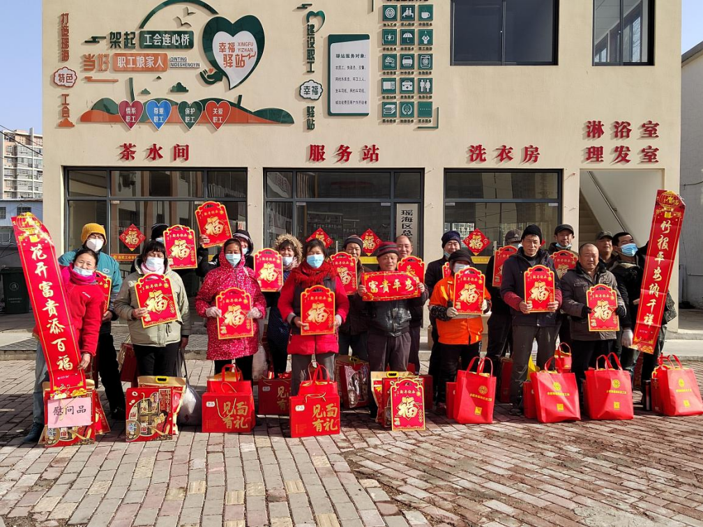 春节前,园区给临工送年货。(受访者提供)