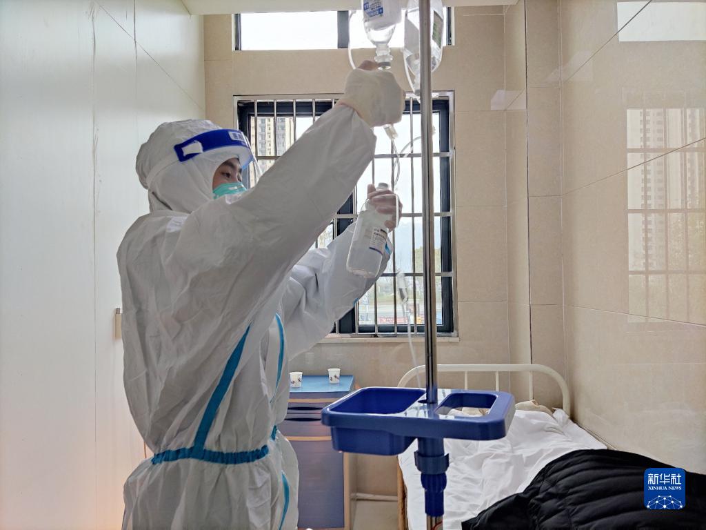 2022年12月29日,云南省镇雄县人民医院发热门诊的一名医生在开展救治工作。新华社记者 林碧锋 摄