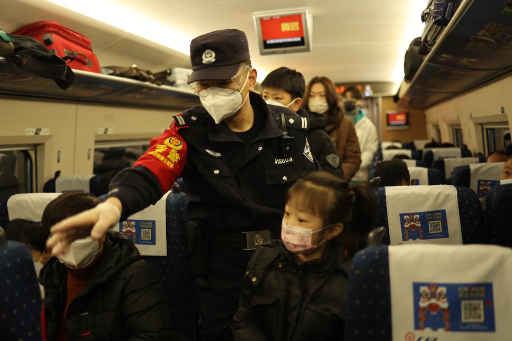 在列车上,单警值乘的乘警长就是“一个人的派出所所长”,要负责维护治安秩序、排查消防隐患、提示安全乘车等,处理各种状况,保障旅客安全。工作以来,张新根已有多个春节在工作中度过。看着车窗外一闪而过的万家灯火,他也会想念家人,并畅想自己回家过年的情景。对他来说,虽然有时离家千里,但能护送旅客们平安回家,这份工作就很有意义。