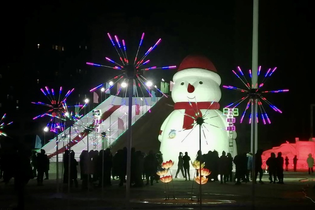 黑龙江省双鸭山市“网红”大雪人吸引市民前来打卡。(受访者供图)