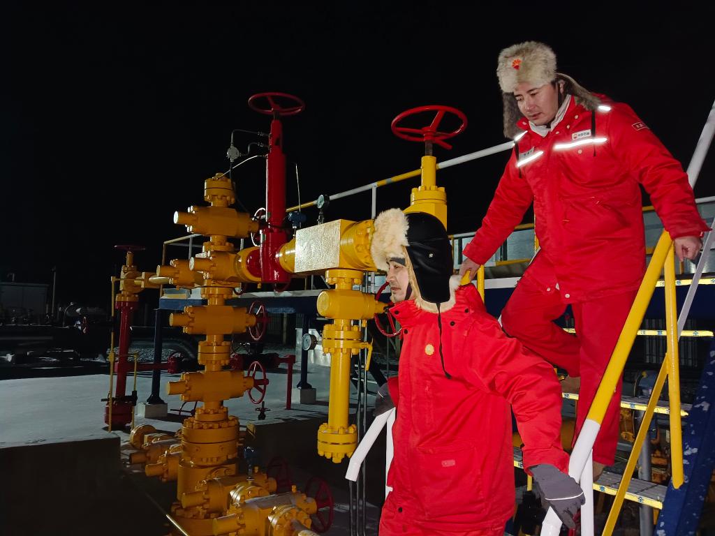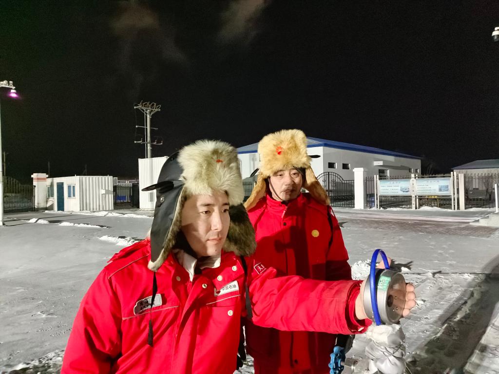 除夕夜,大庆油田采气分公司徐深1井员工在巡检。(受访单位供图)