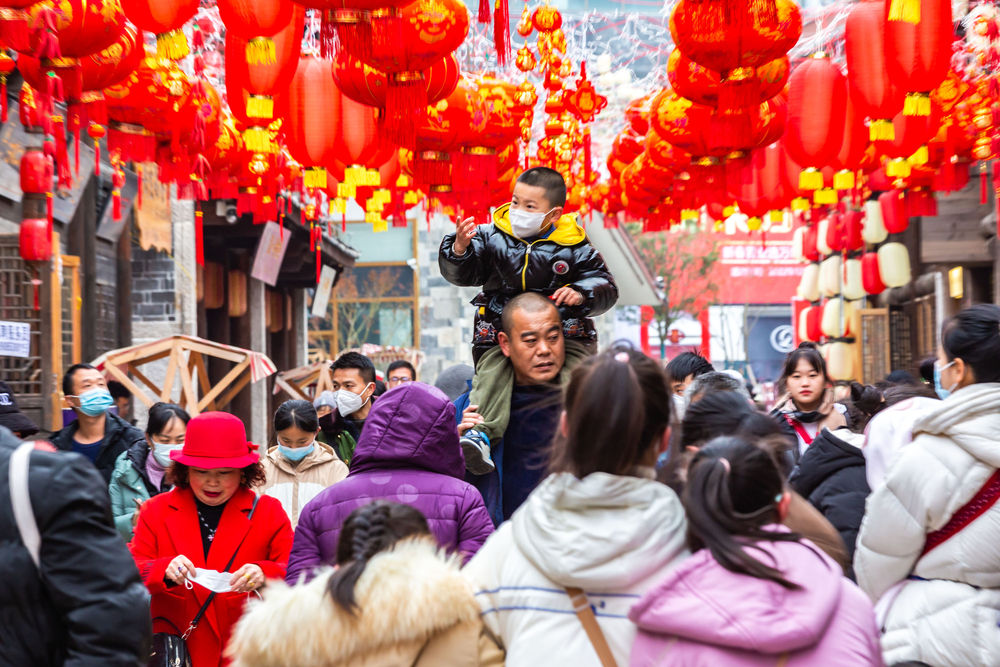 ↑1月22日,市民在贵州省安顺市西秀区安顺古城历史文化街区游玩。 新华社发(陈熙 摄)