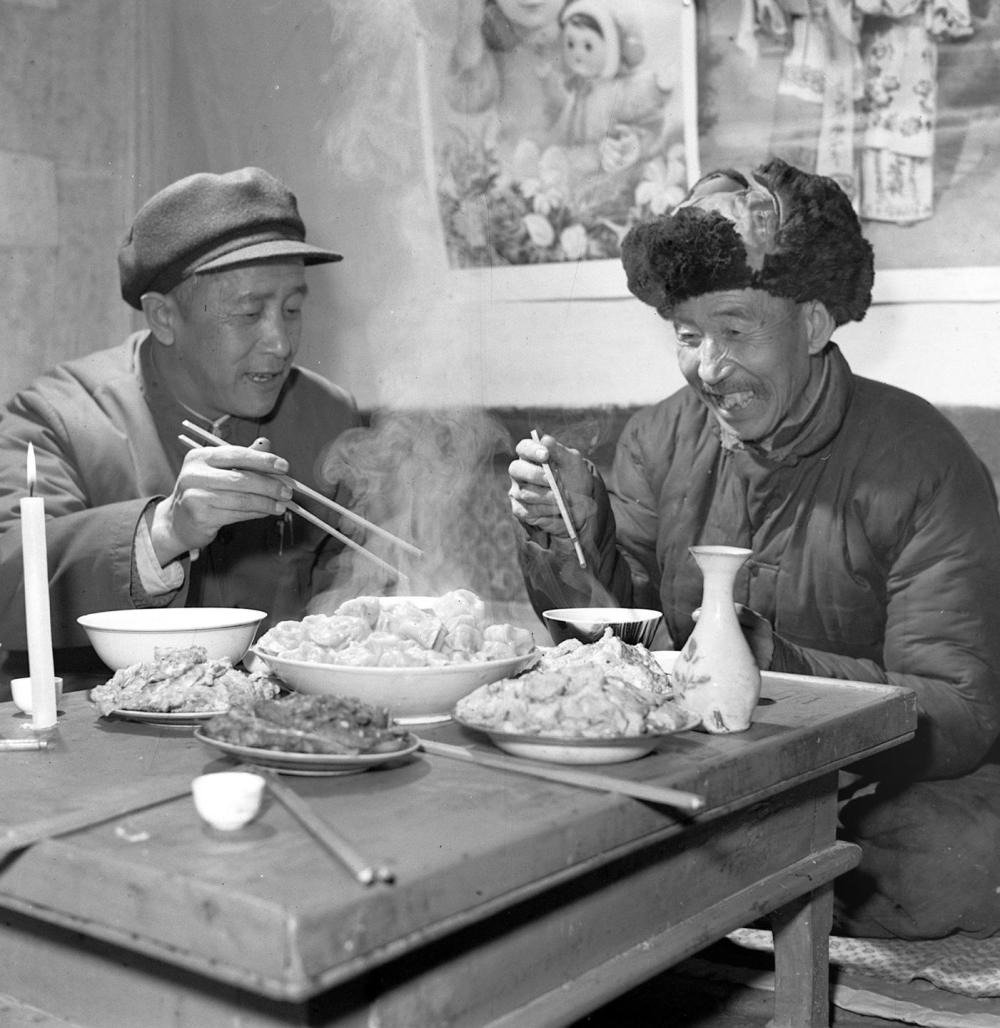 ↑1982年,山西省朔县照什八庄村村民在家里吃饺子。