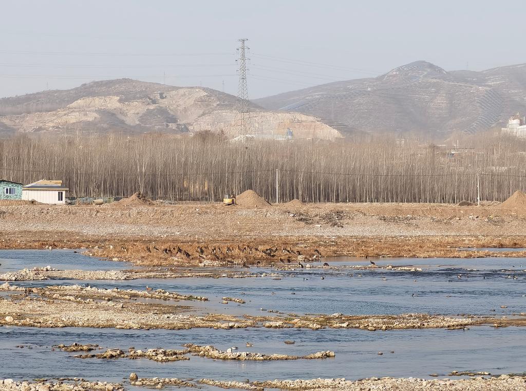 图为冬季的井陉县绵蔓河湿地鸟类成群。(新华社记者杜一方 摄)