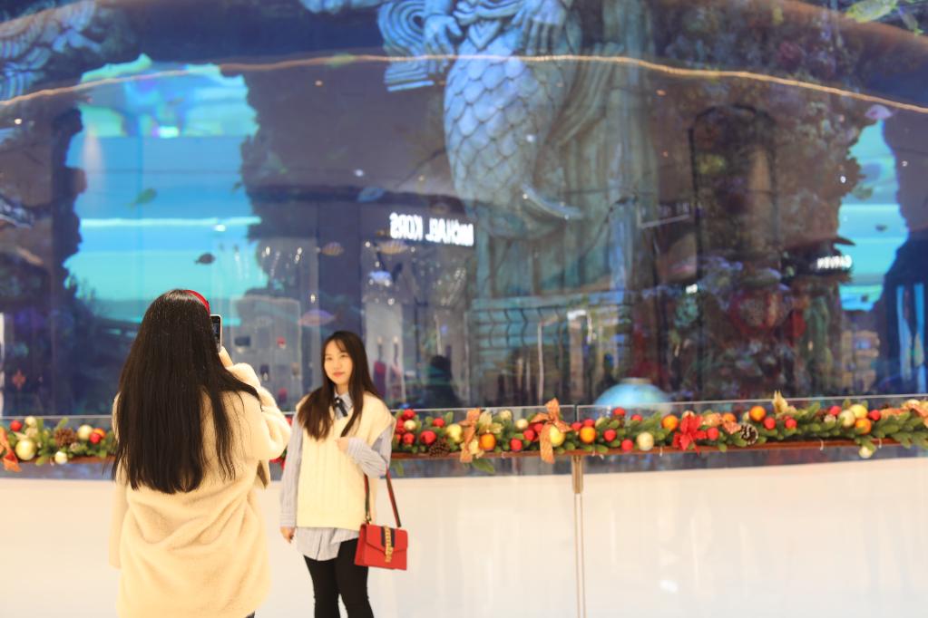 春节期间,顾客在重庆市江北区星光68广场的室内海洋馆前拍照。新华社记者 周思宇 摄