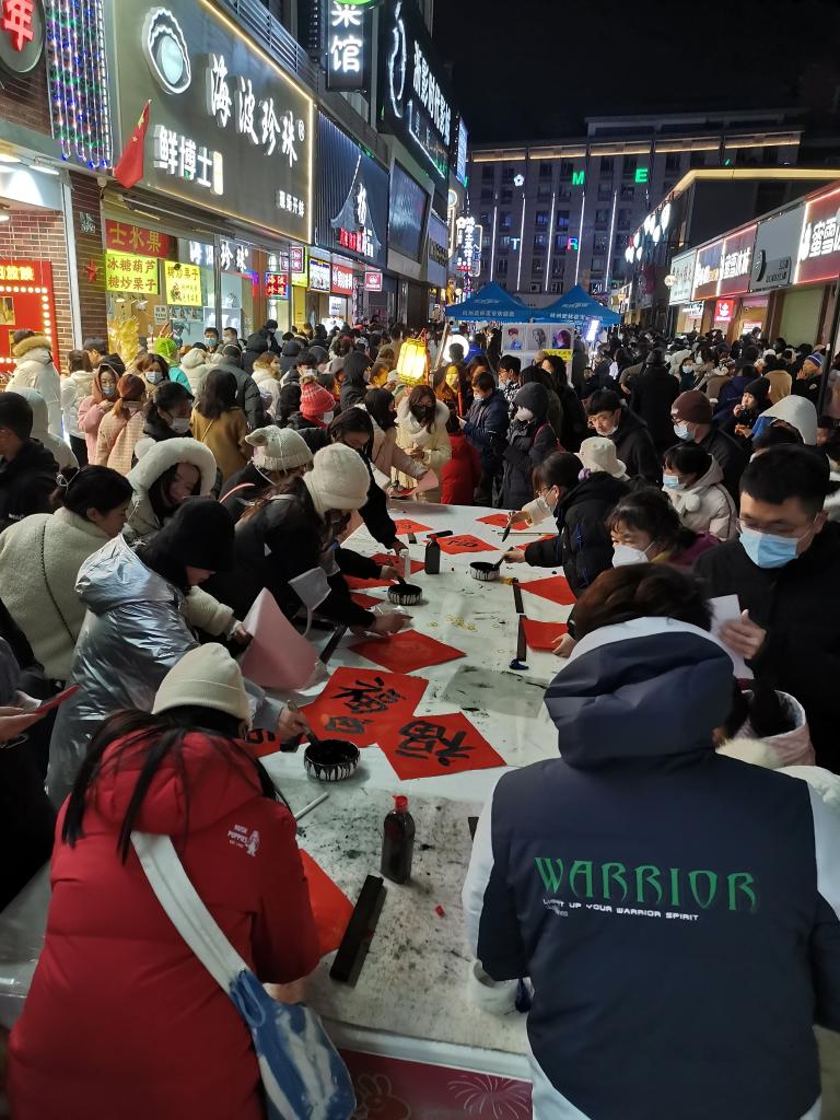 游客参与武林夜市自助写福字活动。新华社记者李平 摄