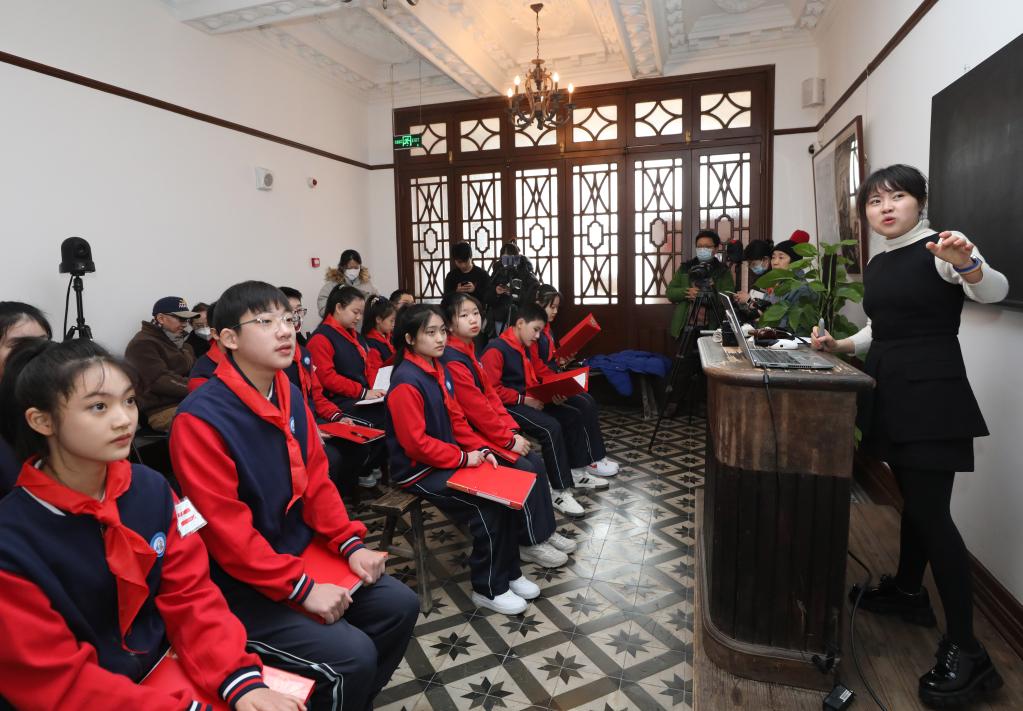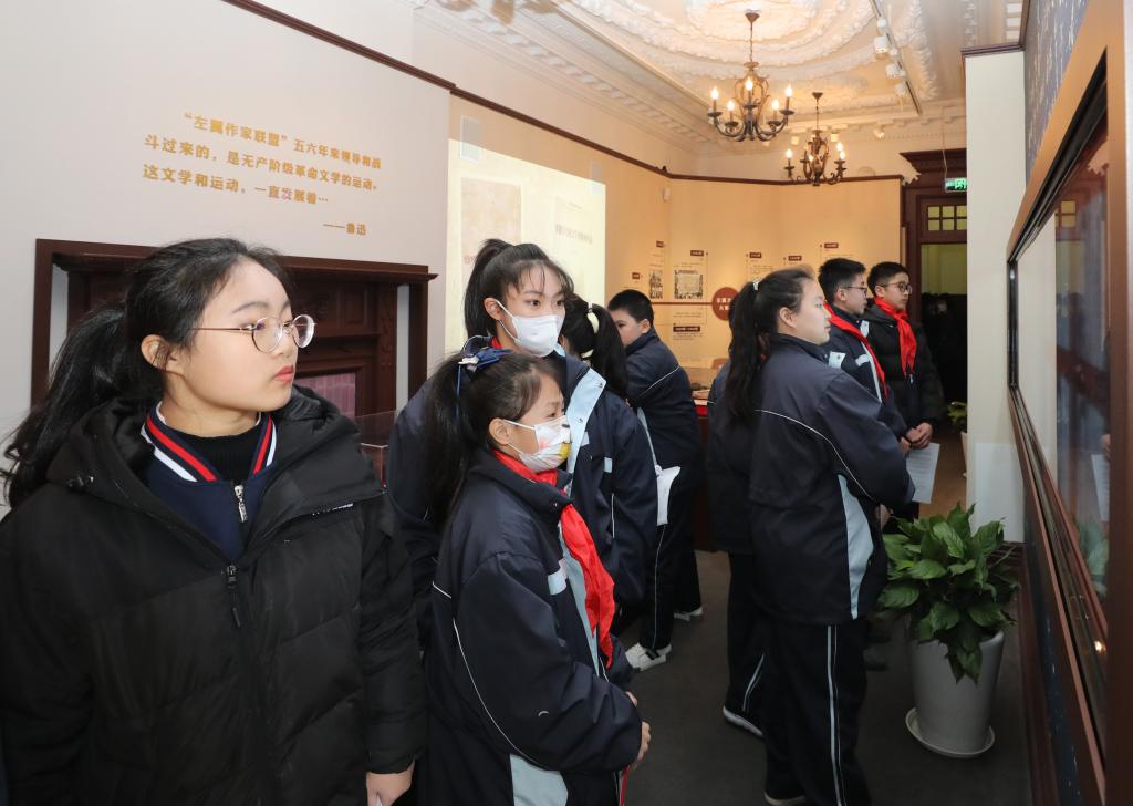 2月15日,虹口区教育学院附属中学的学生们参观中国左翼作家联盟成立大会会址纪念馆。 新华社记者 方喆 摄