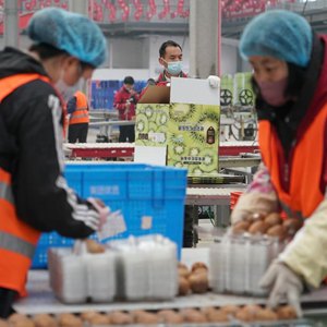 一边将猕猴桃打包,一边将快递单迅速贴在包装箱上。在位于陕西省武功县的京东物流陕西智能供应链中心的自动分拣线前,39岁的郭甩维动作麻利。这位平时在家种植猕猴桃的当地农民,利用农闲时间来此工作。“既能照顾家,还能挣一份钱贴补家用。我自己种果子,也懂果子,挺喜欢这份工作。”她说。