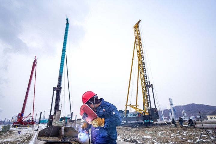 工人在吉林省吉林市吉林石化炼油化工转型升级项目施工现场作业。 新华社记者颜麟蕴 摄