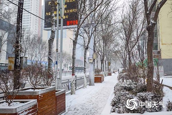 昨晨,青海西宁迎降雪,一片银装素裹。(图/赵海梅)