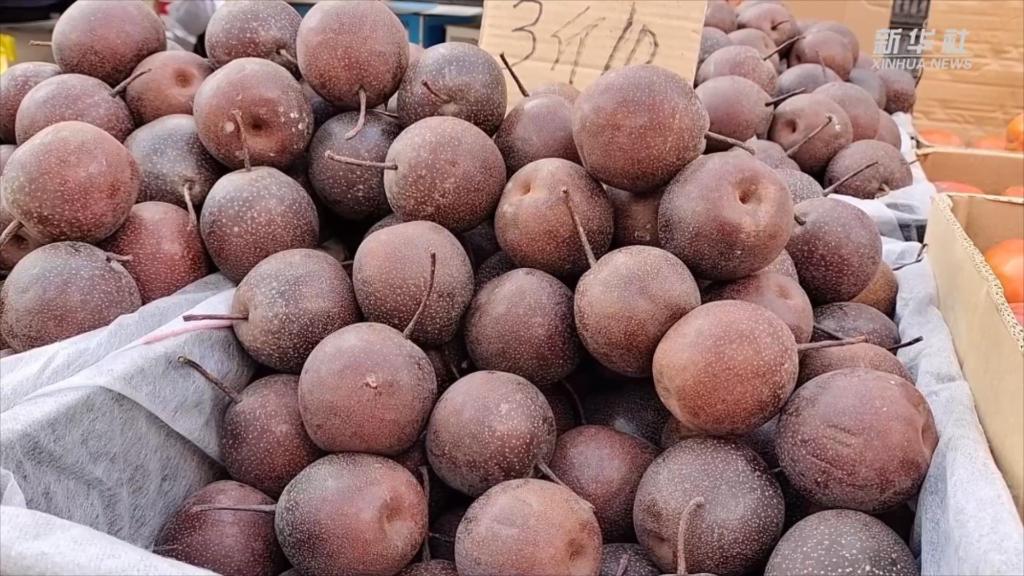 虽然已至雨水节气,黑龙江最低温度仍有零下20摄氏度,多地早市仍可见到冻梨、冻柿子等各种“冻货”。