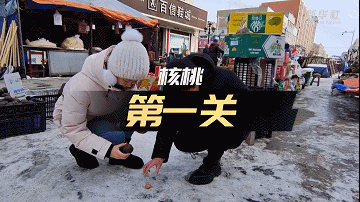 开核桃、砸板砖,冻梨究竟能硬到什么程度?记者在早市现场进行实验,为冻梨设置了核桃、夏威夷果、板砖三道关卡,测试东北硬核水果能否闯关成功。