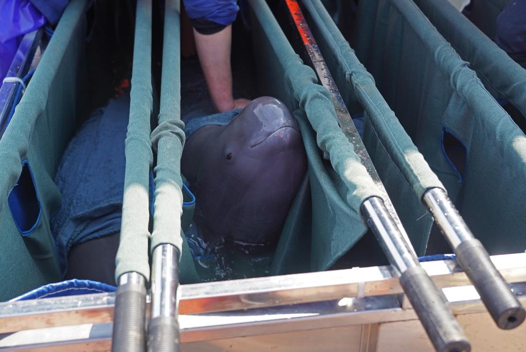 经过三天的人工围捕、体检筛选、护理运输,各相关部门紧密联动,将两头雄性江豚成功迁移至位于江西省湖口县的鄱阳湖南北港水域。