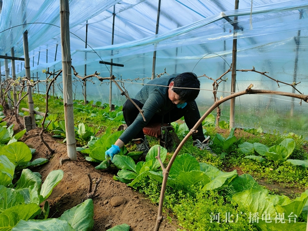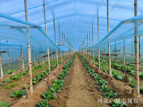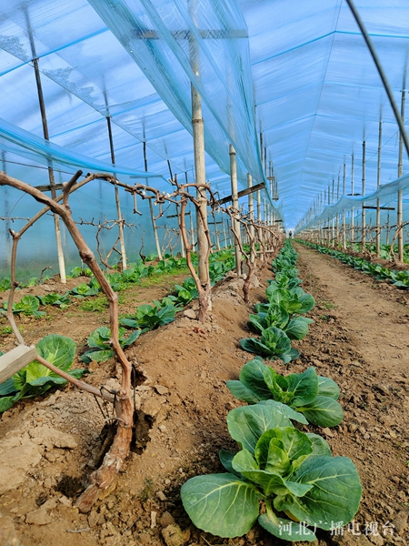 走进东堤北蔬菜大棚种植区北区,种植大户刘晓广的棚里,一株株葡萄藤顺着葡萄架蜿蜒,葡萄藤上已经开始抽芽。葡萄架下方,一颗颗绿油油的圆白菜正茁壮成长。据刘晓广介绍,今年他的的大棚采用的是套种的模式,主要种植葡萄,葡萄下间作圆白菜,提高了设施利用率和种植效益,收入能提高三成左右。利用套种模式每个棚平均一年纯收入在3万元以上。