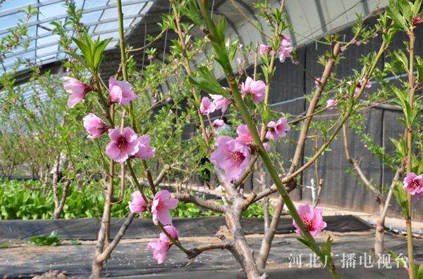 西堤北冀西蟠桃大棚内,一朵朵粉若桃腮的蟠桃花竞相绽放,花香四溢。桃花不仅是道美丽的风景线,也孕育着丰收的希望,蟠桃预计5月中旬成熟上市,不施化肥农药、完全采用有机肥。产品2022年7月被认定为国家绿色食品A级标准,市场畅销,效益可观。