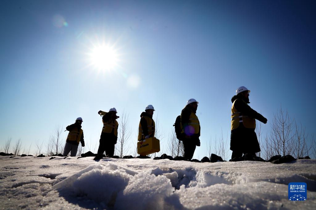 2月25日,黄腾(右一)与同事在佳抚铁路佳富段进行外业调查。