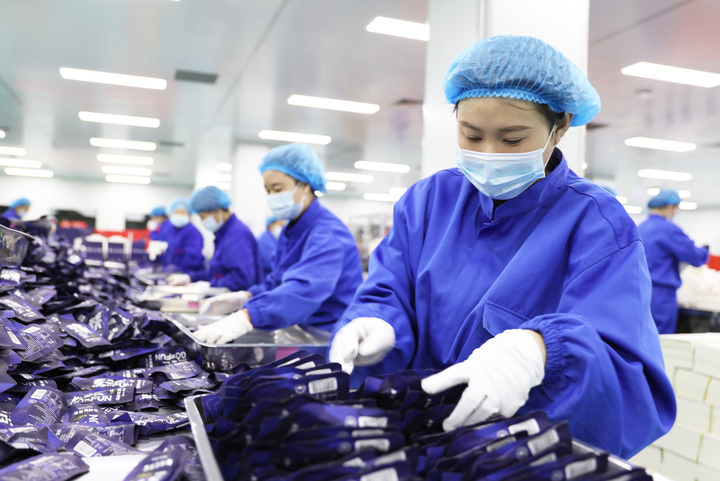 2月22日,宁夏百瑞源枸杞股份有限公司员工在生产线作业。新华社记者卢鹰 摄