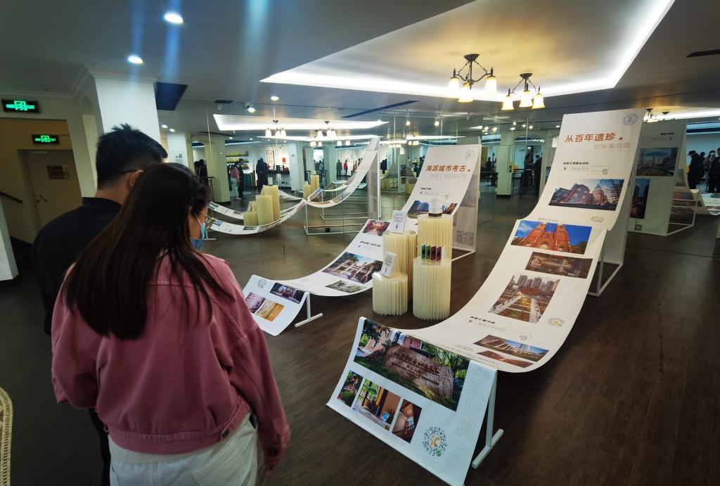 3月14日,游客在武康路旅游咨询中心参观“徐汇之美 海派之源”主题展。新华社记者陈爱平 摄