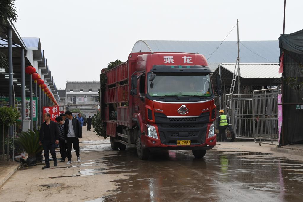 货车正在向外地运输苗木。新华社记者 张斌 摄