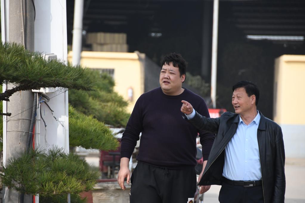 裕盛村党支部书记王彦鹏(右)询问苗木销售情况。新华社记者 张斌 摄