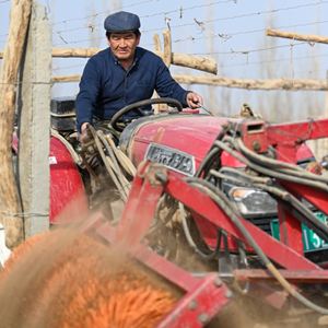 春回日暖,新疆吐鲁番果农阿布都拉·阿不都热合曼熟练驾驶着开墩机,把埋在地下越冬的葡萄藤挖了出来,搭上葡萄架。这几天,伴随泥土的芬芳,吐鲁番几十万亩葡萄陆续开墩上架。